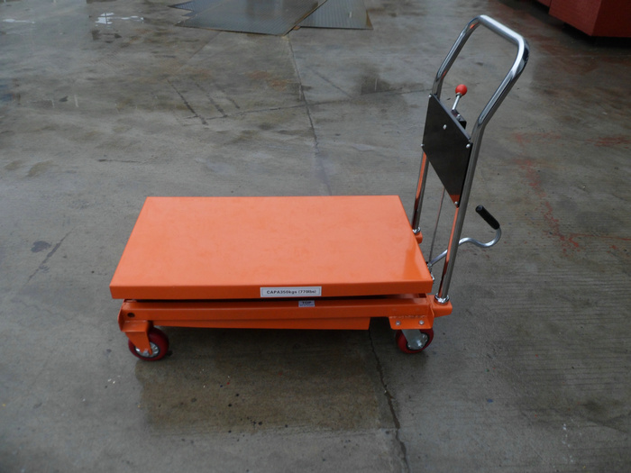 型號: TF30 載重: 300KG 最低高度: 270/380MM 最大高度: 900MM 工作臺尺寸:820*500*50MM 手柄高度: 970MM 自重: 65KG 外包裝尺寸:900*520*270MM